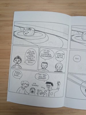 "Born and Rolled" was my first attempt to process and share my experiences in comics as an American of Japanese descent. One of my traumas and fears is being pigeonholed into my racialized exeperiences, but at the same time, with limited community in which to process these experiences, I turned to the labor-intense medium of comics to make time and space for myself to process the pain and confusion of being me.