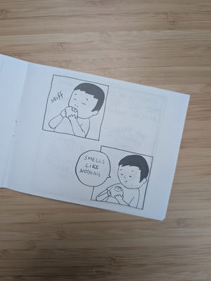 "kaki" is a celebration of a moment of connection as an American of Japanese descent. It explores how food and language can connect us to shared histories and others including our ancestors. You can read this comic on my Instagram: part 1 and part 2.